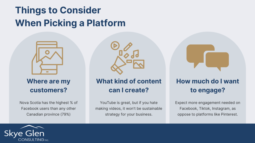 Feeling overwhelmed with this information? Consider these top three social platforms and decide what may be best for your business. We’ll cover the next three in the next marketing blog post, so that your brain has a chance to decompress.